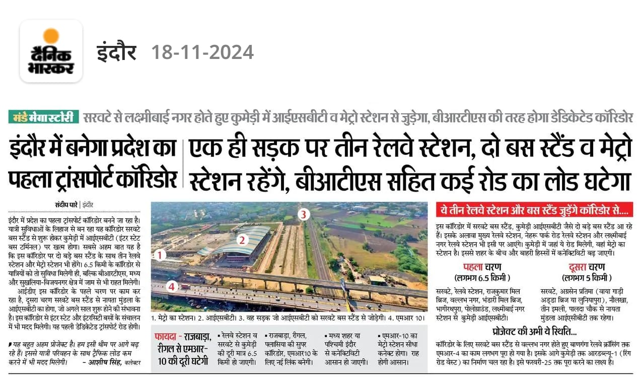 Once operational, the transport corridor will drastically reduce travel distances within the city. For instance, the journey from Rajbada and Regal to MR-10 will be significantly shorter, providing a quick link to major commercial and residential areas. This enhancement in connectivity is expected to spur further economic and developmental activities, reinforcing Indore’s position as a key urban center in Central India.